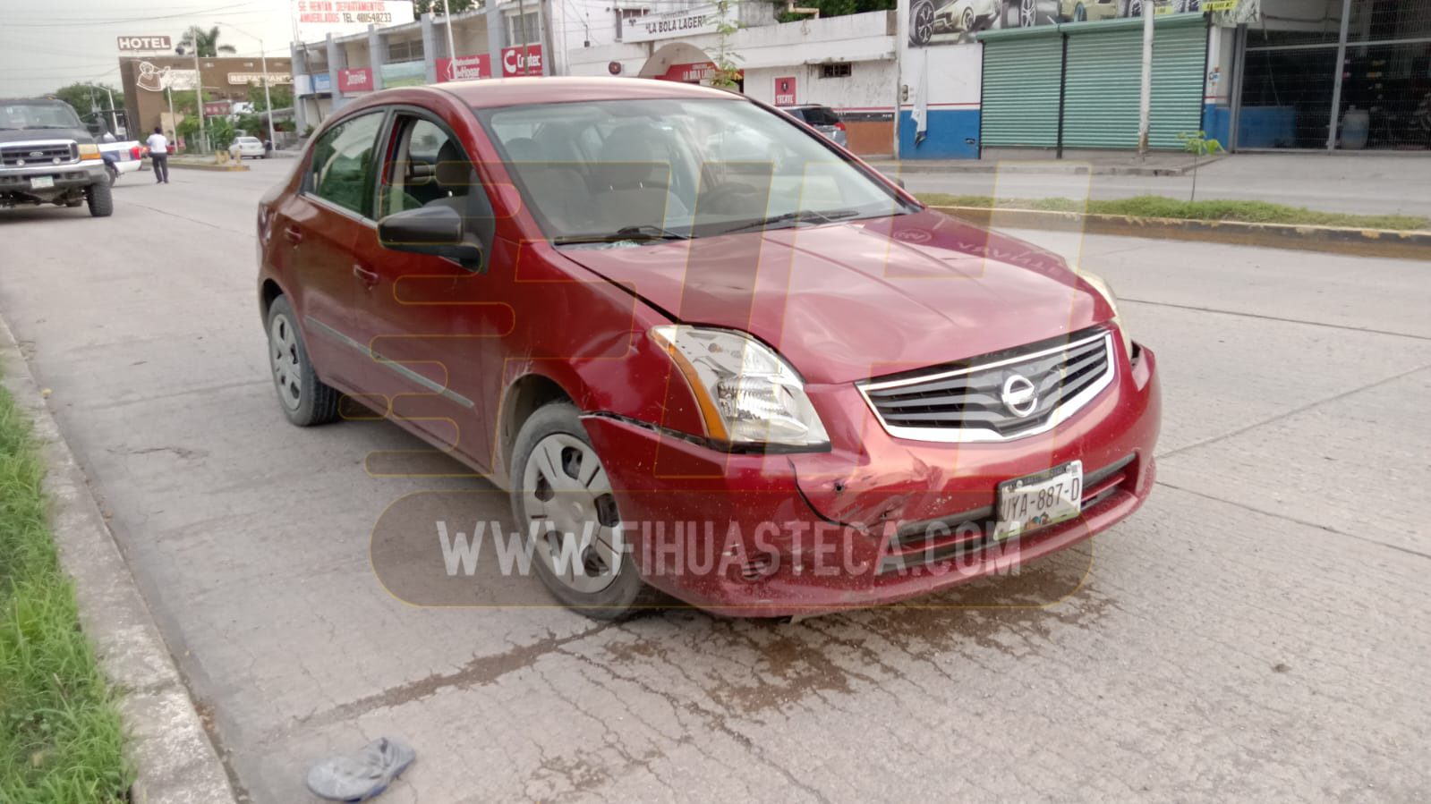 En esa maniobra se atravesó al paso de un automóvil Nissan color guinda, cuyo conductor no pudo frenar a tiempo, provocando el impacto.