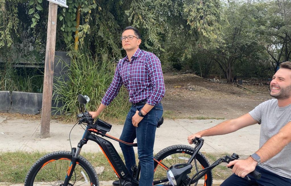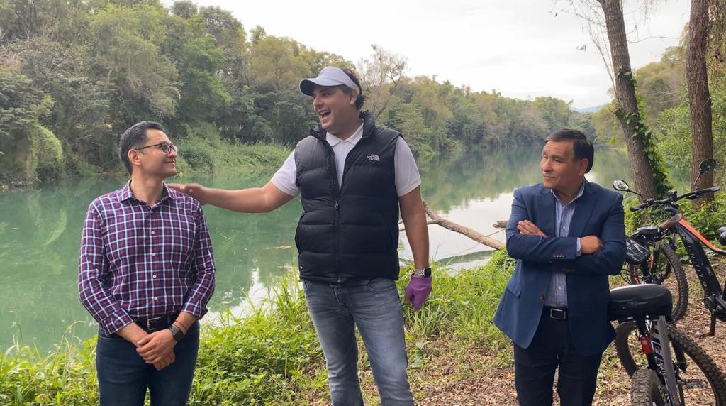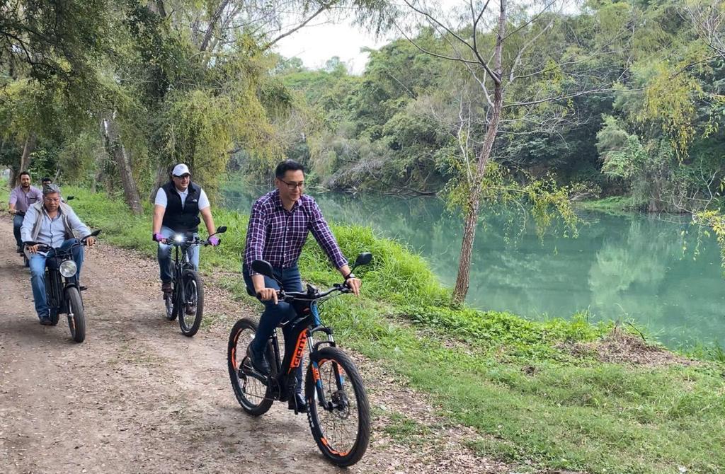 Los alcaldes hicieron un recorrido en bicicleta y en el carrito eléctrico en la zona urbana y en la ribera del río Valles.