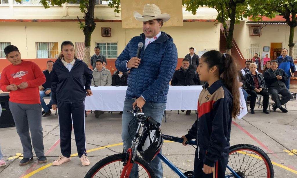 El edil obsequió una bicicleta para promover la Ecovía; así como tabletas y balones.