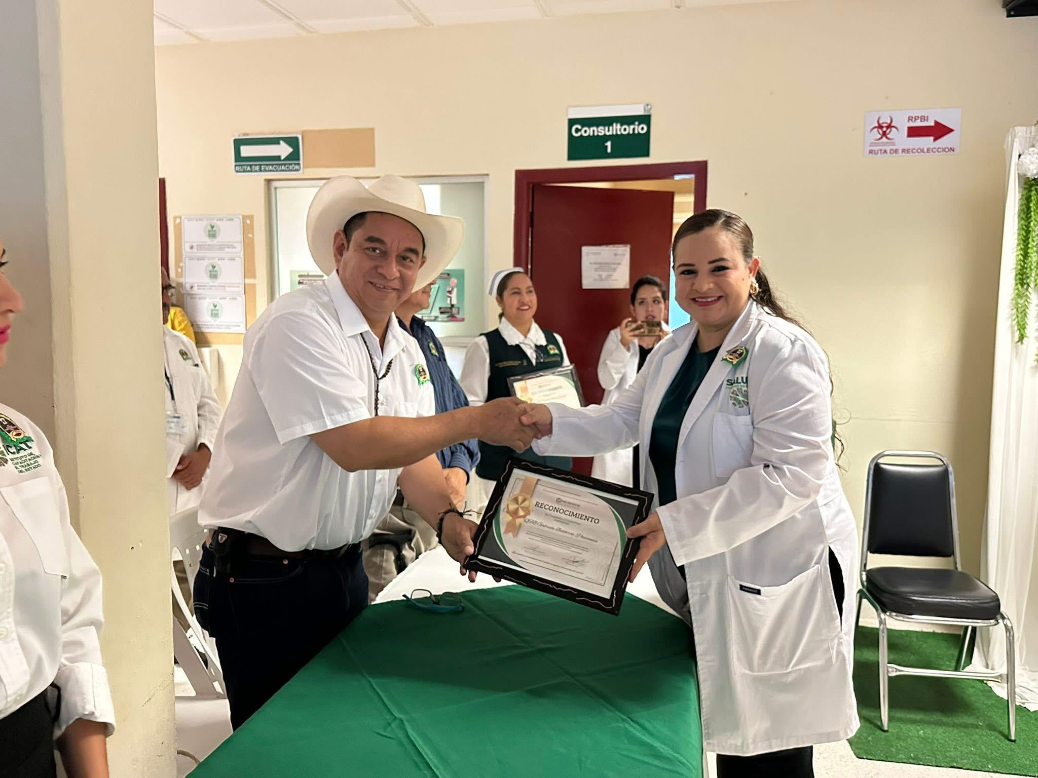 La directora del HBC, Dra. Karime Danaeé Madrid Chávez, entregó reconocimientos al personal del área de enfermería, destacando el esfuerzo diario que realizan en la atención directa a pacientes y su compromiso con el bienestar de la comunidad.