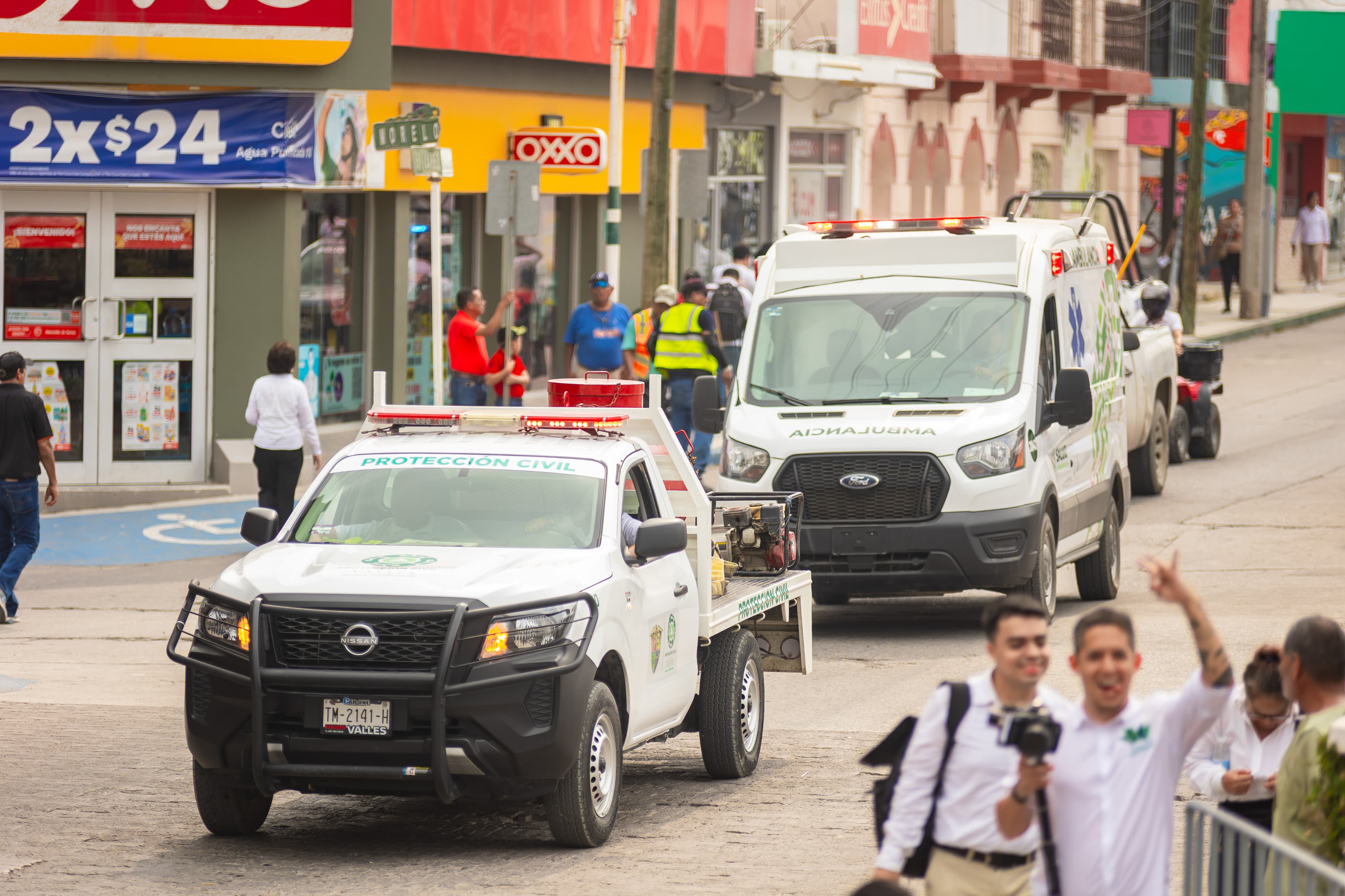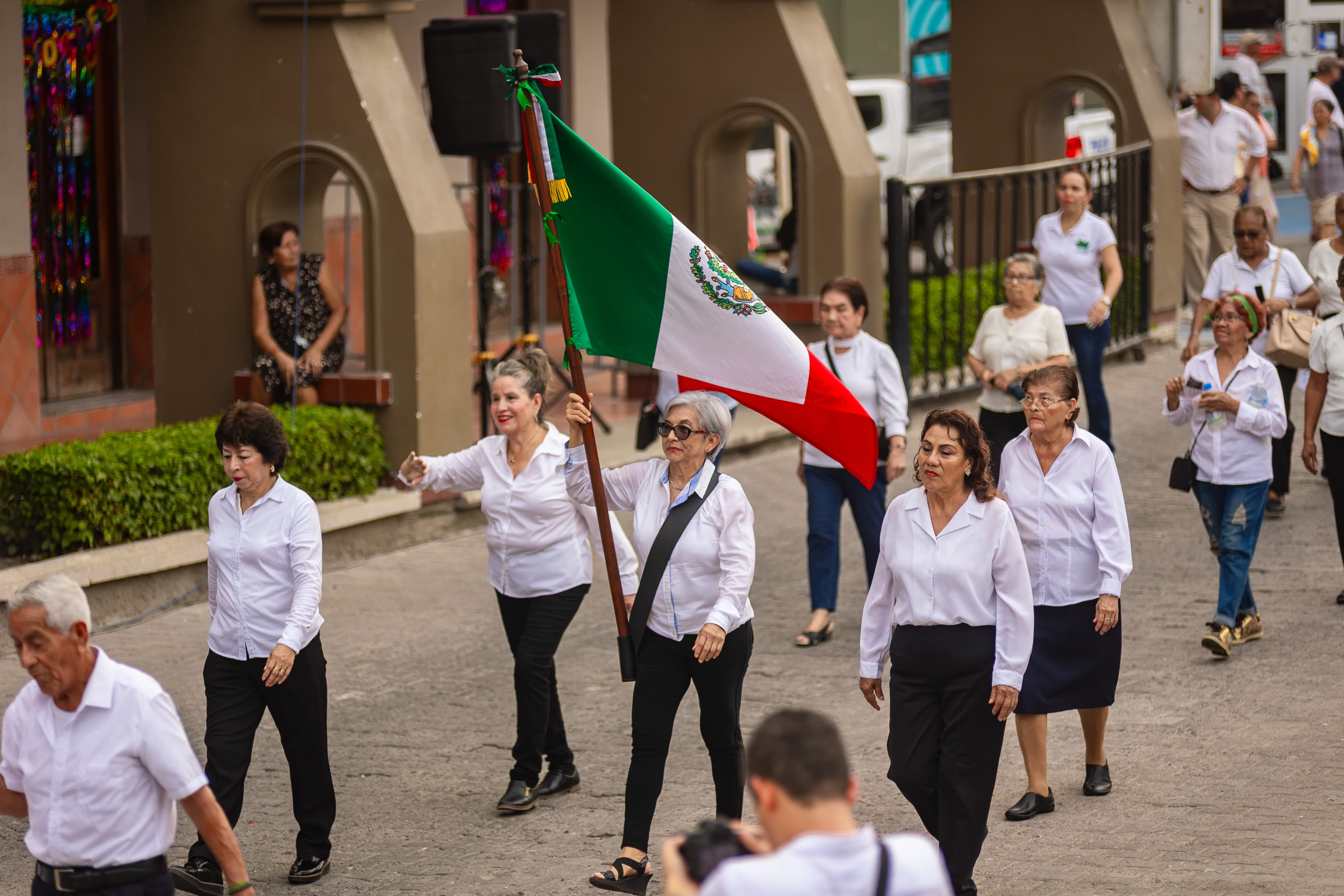 El desfile fue encabezado por el presidente municipal David Armando Medina Salazar, acompañado por la presidenta del Sistema Municipal DIF, Ena Avendaño Uscanga; integrantes del Cabildo, funcionarios del Ayuntamiento y representantes de diversos sectores sociales.