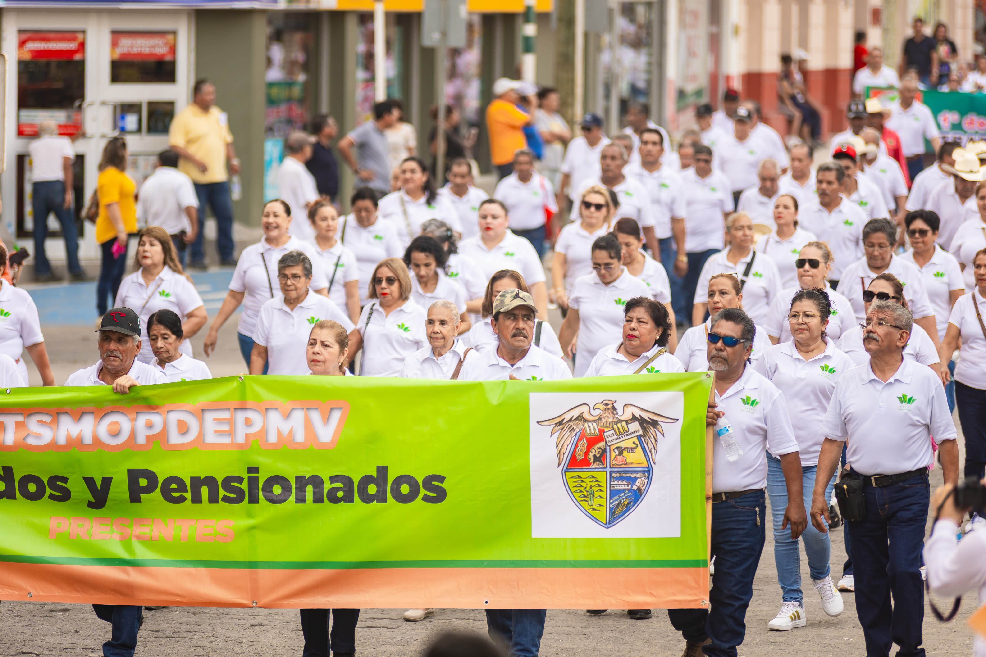 El desfile fue encabezado por el presidente municipal David Armando Medina Salazar, acompañado por la presidenta del Sistema Municipal DIF, Ena Avendaño Uscanga; integrantes del Cabildo, funcionarios del Ayuntamiento y representantes de diversos sectores sociales.
