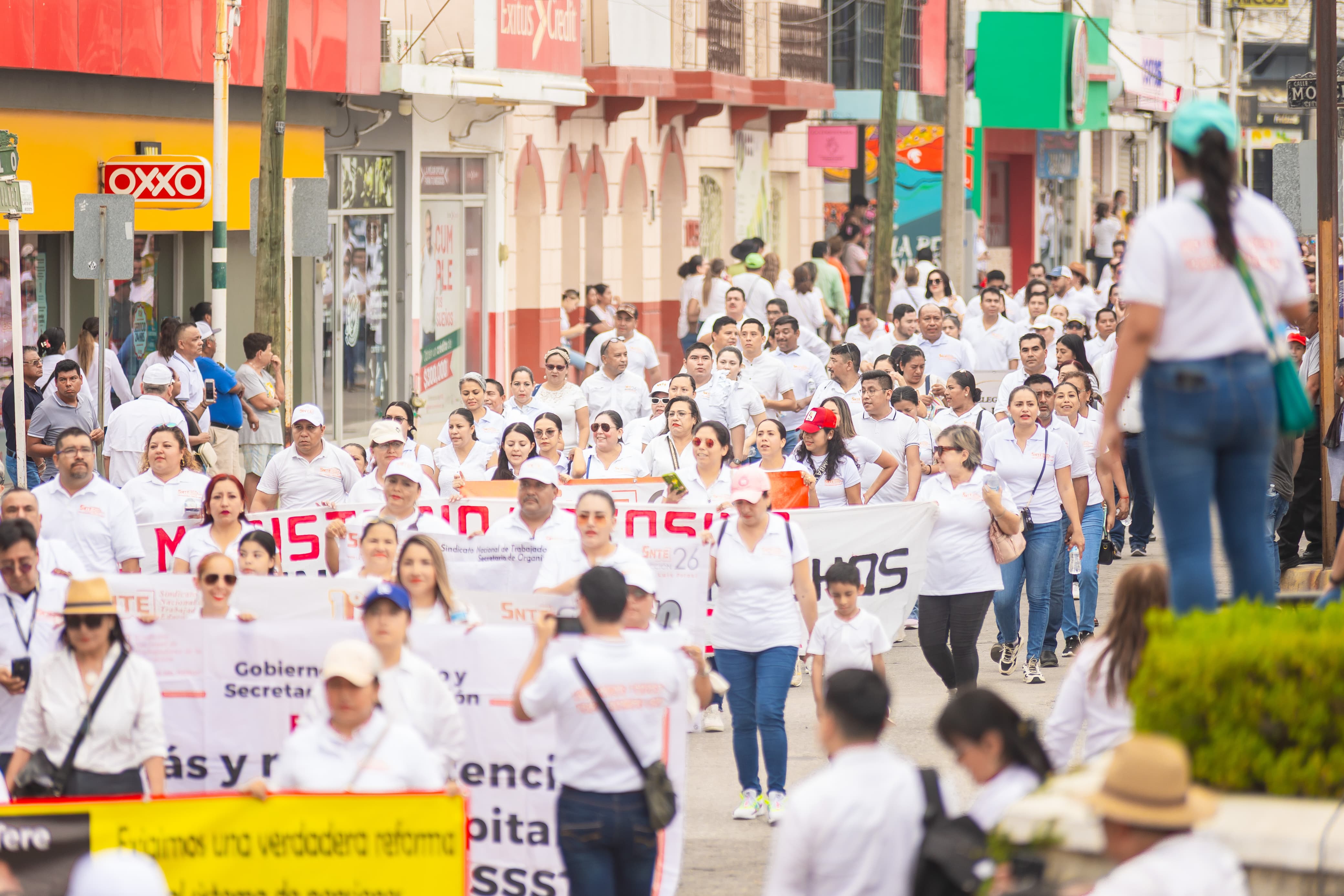 Asimismo, se sumaron contingentes de organizaciones sindicales y laborales, como el gremio de fotógrafos, la Sección 7 de Azucareros, el Sindicato de Telefonistas de México, el CONALEP plantel 044, el CBTIS 46, el Tecnológico Nacional de México Campus Valles, la Sección 26 del SNTE y el Sindicato Camionero “Confederación Joven de México”.