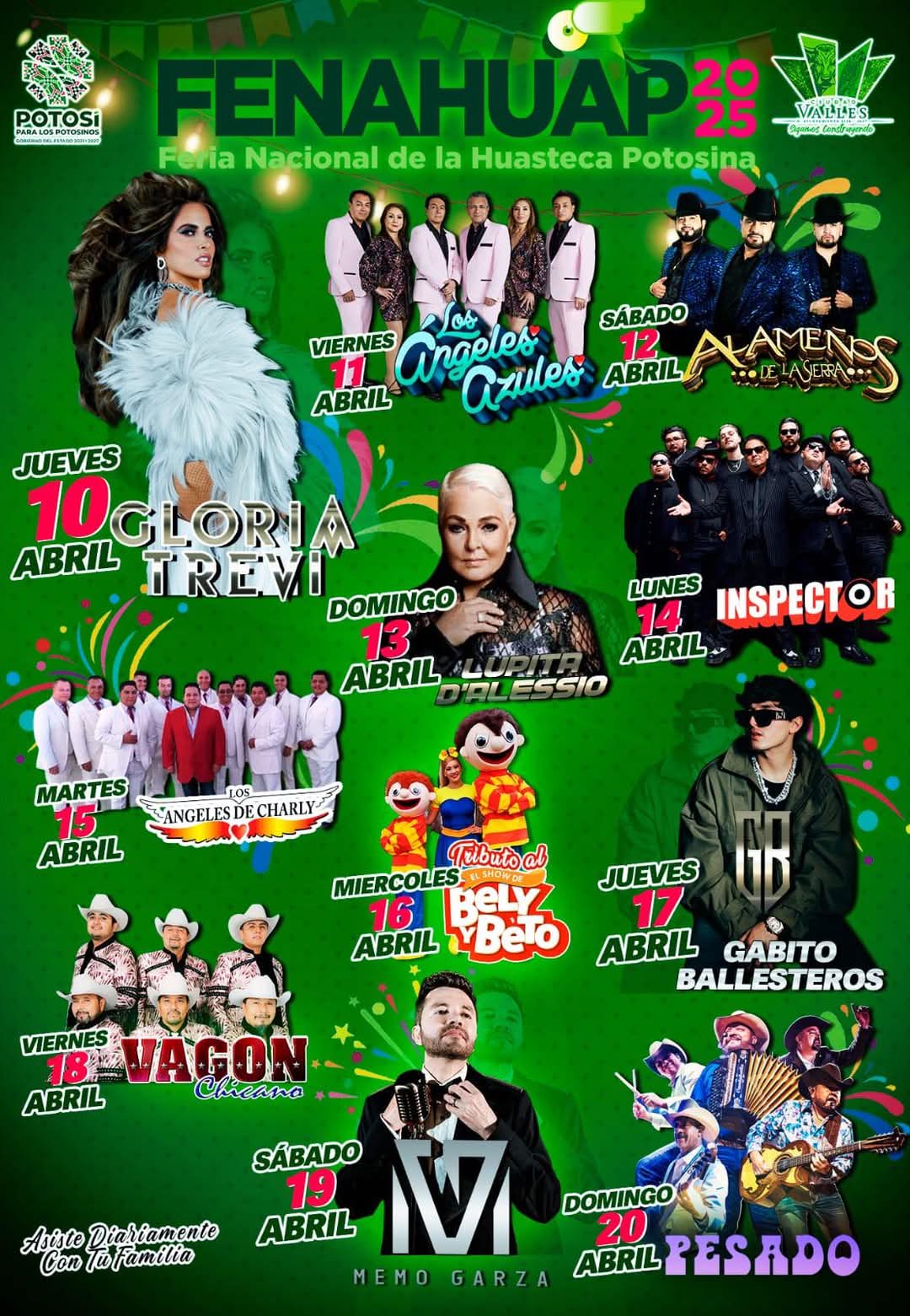 El 10 de abril abrirá este evento nacional la cantante Gloria Trevi; el 11 de abril, Los Ángeles Azules; el 12 de abril, Los Alameños de la Sierra; el 13 de abril, Lupita D’alessio; el 14 de abril, Grupo Inspector; y el 15 de abril, Los Ángeles de Charly.
