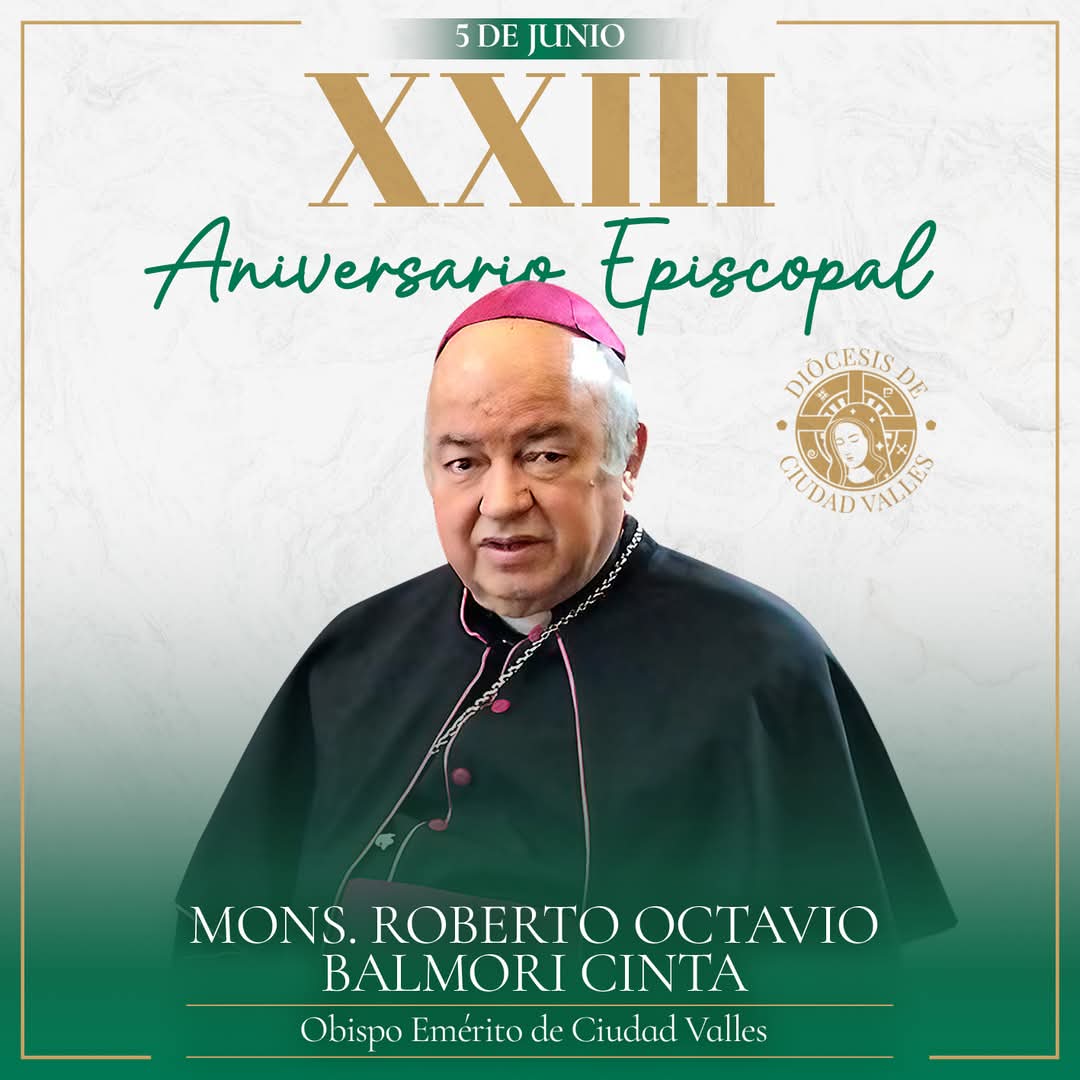 Ciudad Valles, S.L.P.- En un ambiente de fe y recogimiento, la comunidad católica de Ciudad Valles se reunió este jueves 5 de junio en la Catedral para celebrar una misa especial con motivo del 23 aniversario de ordenación episcopal de Monseñor Roberto Octavio Balmori Cinta, Obispo Emérito de esta diócesis.