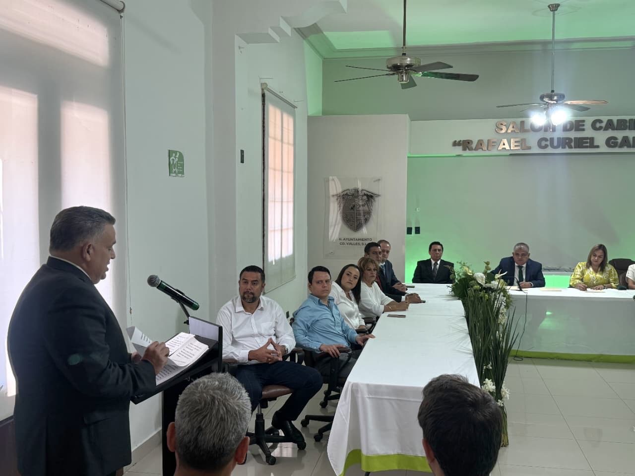 La mañana de este viernes 26 de septiembre, el Presidente Municipal de Ciudad Valles, David Armando Medina Salazar, entregó a los integrantes del H. Cabildo, el Primer Informe de Gobierno, correspondiente a la segunda administración pública municipal 2024-2027, en el marco de la Quinta Sesión Solemne, realizada en el Salón de Cabildo “Rafael Curiel Gallegos”.