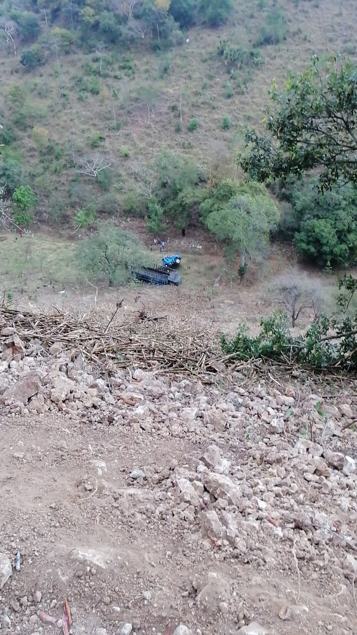 Tamasopo. Esta tarde en la carretera La Vieja-Tamasopo, un camión cañero se salió del camino y cayó por un barranco.