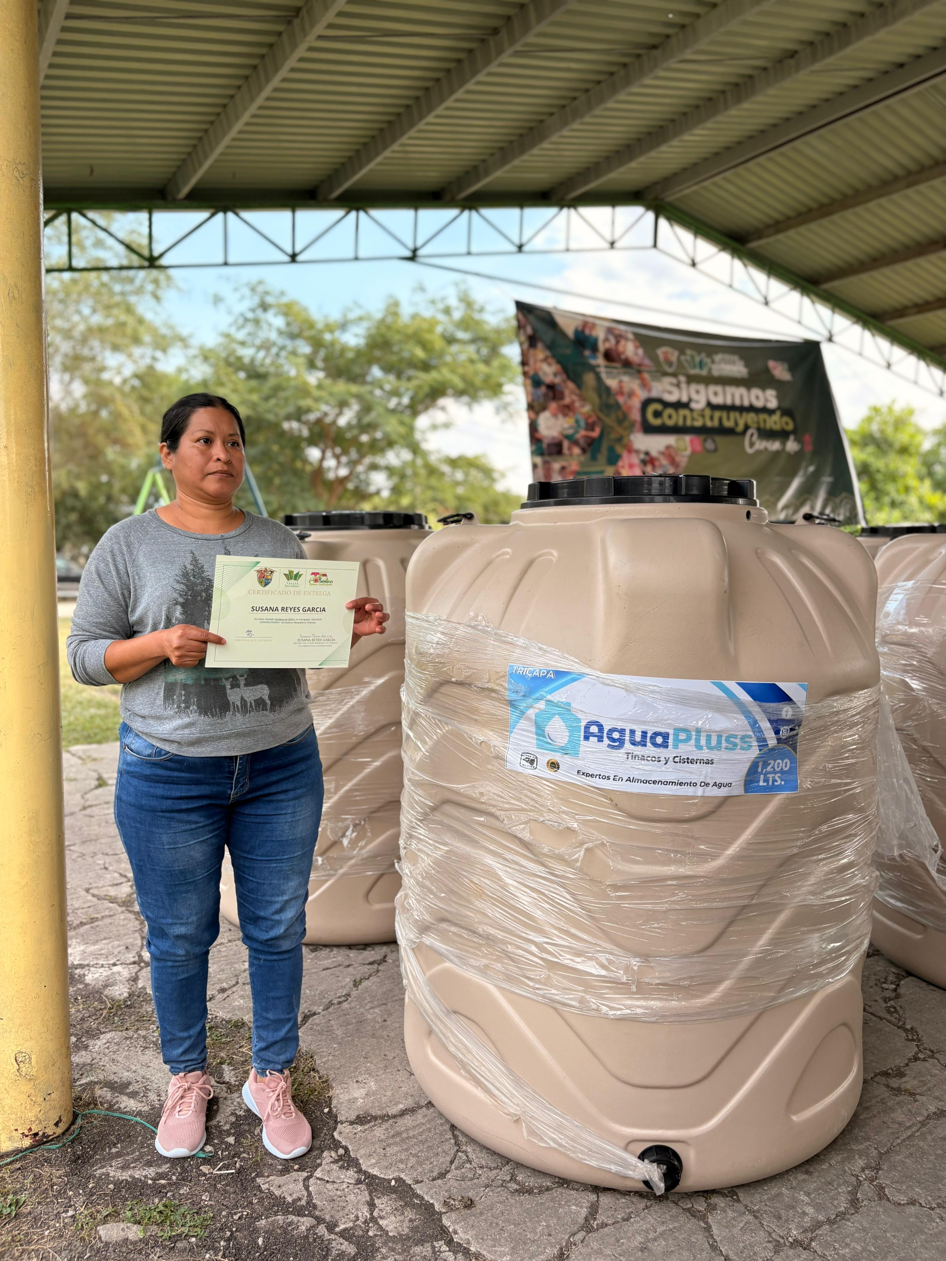 Cada paquete incluyó láminas galvanizadas, herramientas como carretilla, pala y azadón, parrillas para cocina con tanque e instalación de gas, además de tinacos tricapa para almacenamiento de agua.