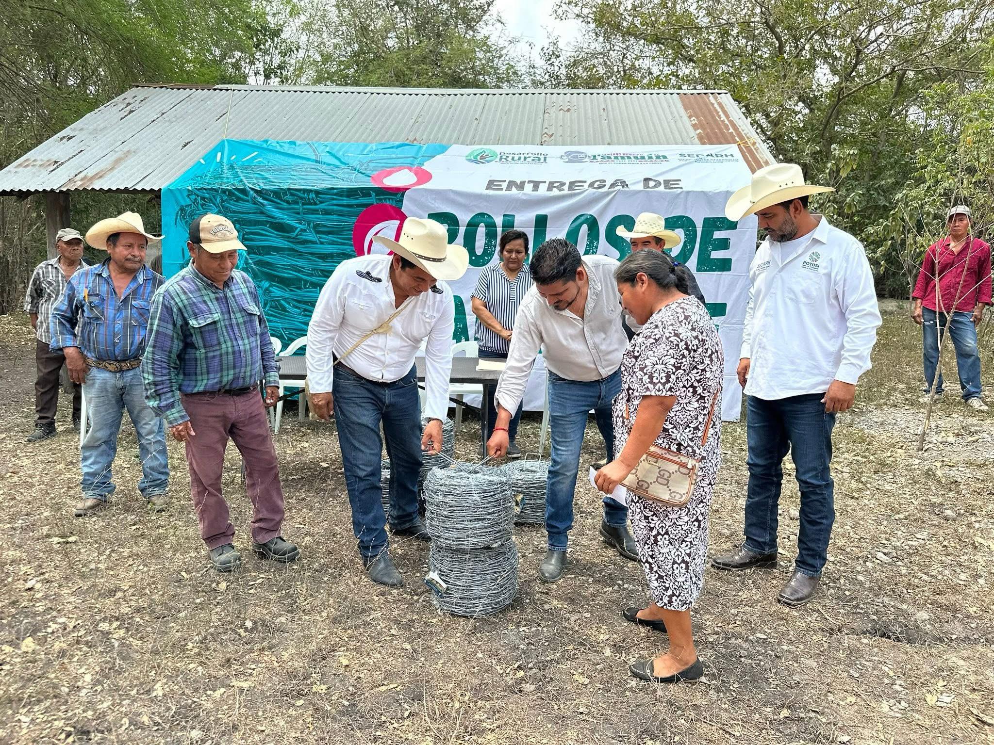 Entregan mil rollos de alambre de púas a ganaderos de Santa Martha en Tamuín