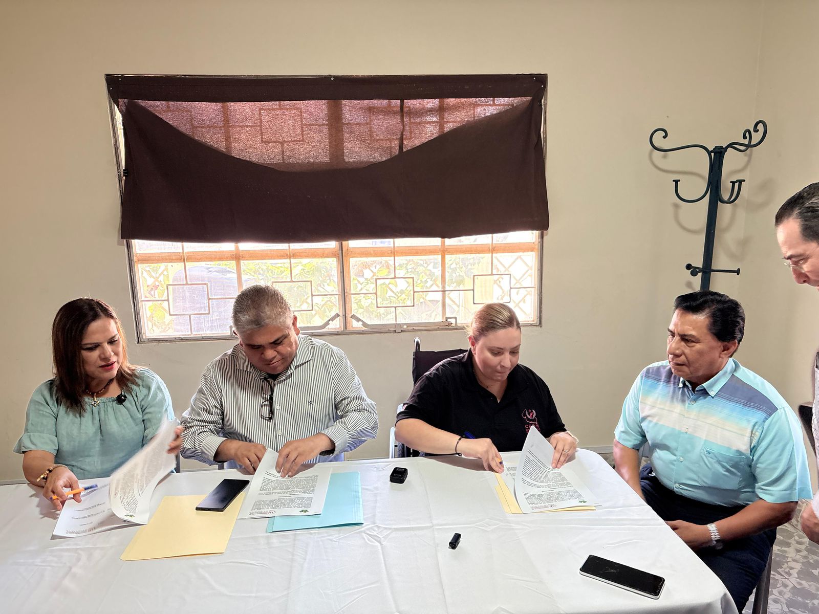 La firma del convenio contó con la presencia de la presidenta de la CEDH, Giovanna Itzel Morales Argüello; Miguel Ángel Carvajal, secretario técnico de la Comisión; el síndico municipal Víctor Manuel Palomares; la coordinadora municipal de Derechos Humanos, Verónica Rodríguez Galván; y la regidora Guadalupe Mendiola Acosta, integrante de la comisión edilicia de Derechos Humanos.