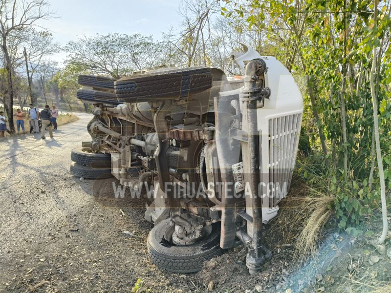 Una pipa del Ayuntamiento de Ciudad Valles, utilizada para abastecer de agua potable a comunidades de la zona tének, volcó la tarde de este sábado en la carretera que conecta al ejido La Pila con el ejido San Miguel.