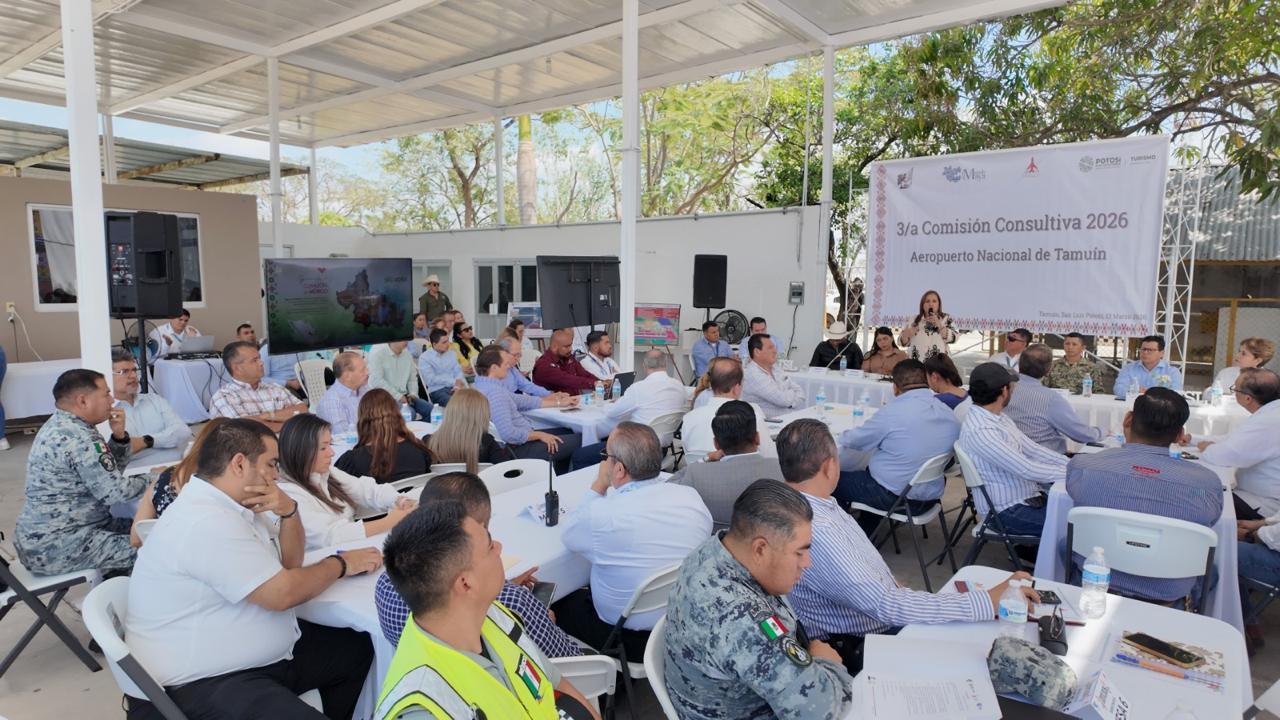 TAMUÍN, S.L.P. Autoridades estatales, municipales y representantes de distintos sectores productivos sostuvieron una reunión de trabajo con el objetivo de fortalecer la operación y el desarrollo del Aeropuerto Nacional de Tamuín, considerado una infraestructura estratégica para la conectividad de la Huasteca Potosina.