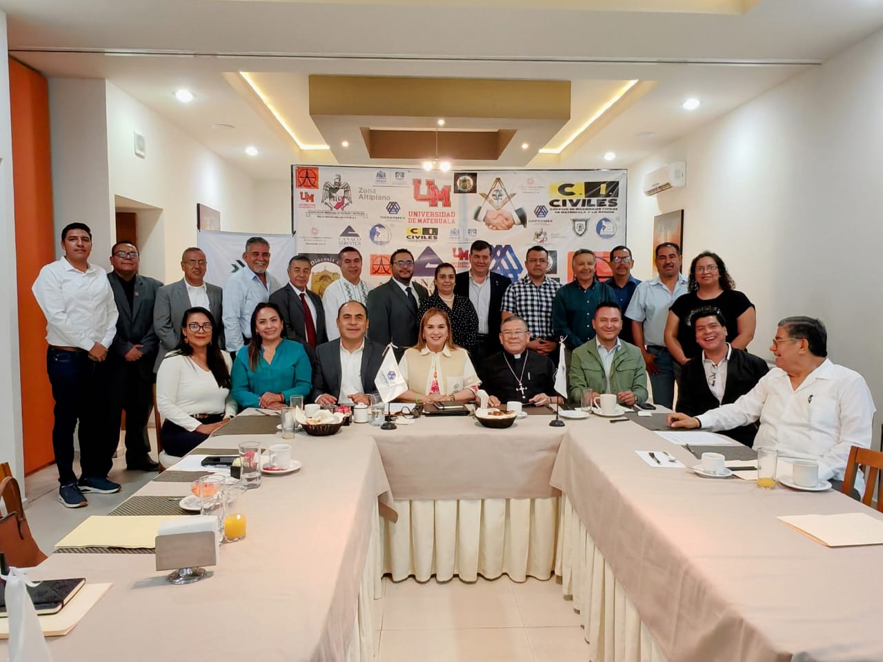 El encuentro, encabezado por la secretaria de Turismo del Gobierno del Estado, Yolanda Josefina Cepeda Echavarría, reunió a cámaras y asociaciones empresariales de la región, así como al presidente municipal de Matehuala, Raúl Ortega Rodríguez; el obispo Margarito Salazar Cárdenas; el delegado de SEDESORE, Lic. Franco Coronado Guerra; y la delegada regional de Turismo, Yolanda Belmares.
