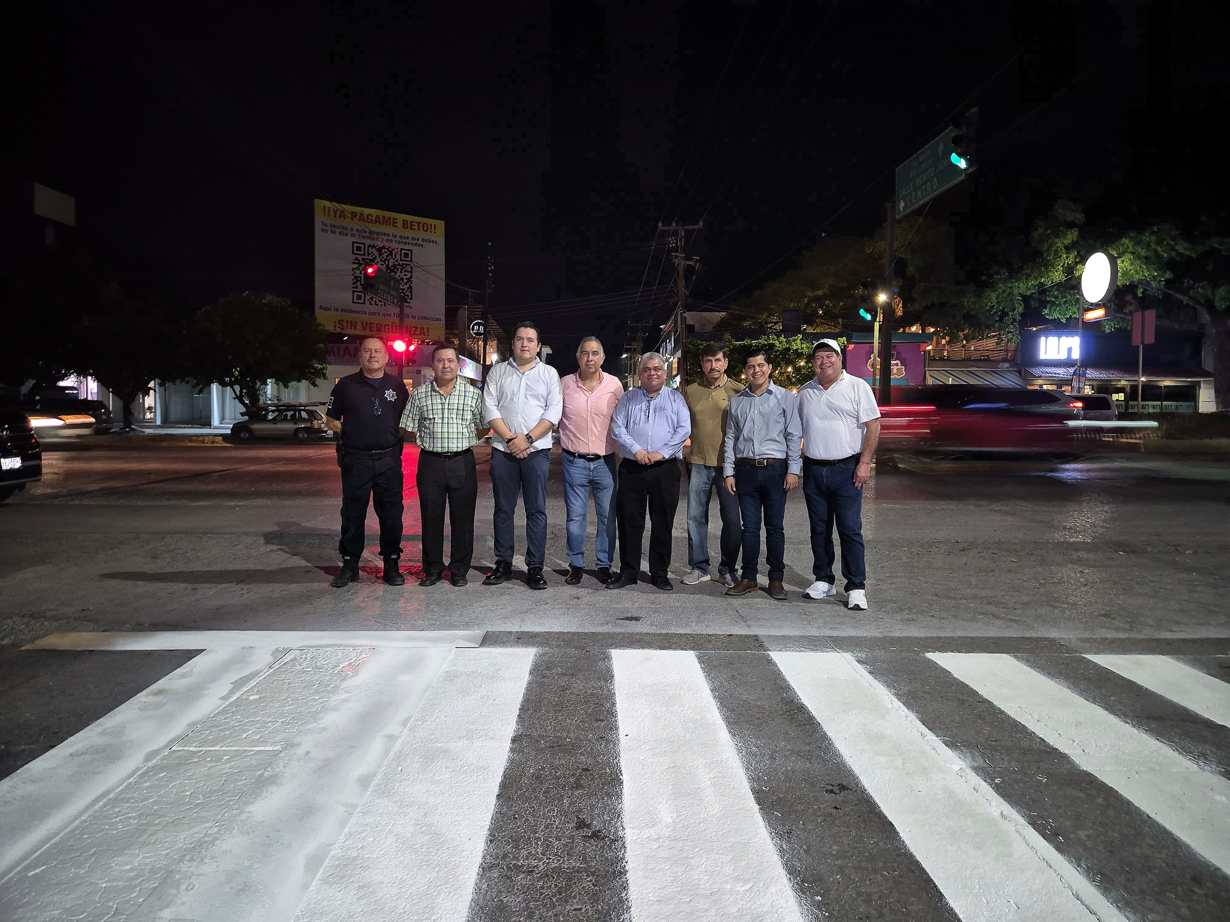 Como parte de esta suma de esfuerzos, implementados por el Presidente Municipal David Armando Medina Salazar, se inició con la aplicación de pintura para pasos peatonales y la delimitación de carriles de almacenamiento con flechas de flujo, en el cruce de la calle Juárez con el bulevar México-Laredo, una de las zonas de mayor tránsito en la ciudad.