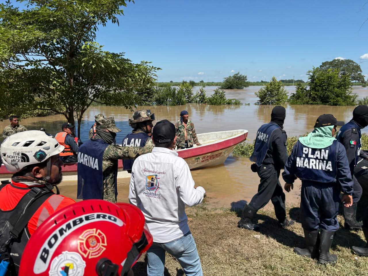 La zona permanece anegada desde el fin de semana debido al desbordamiento del río Moctezuma, que aisló a varias localidades.