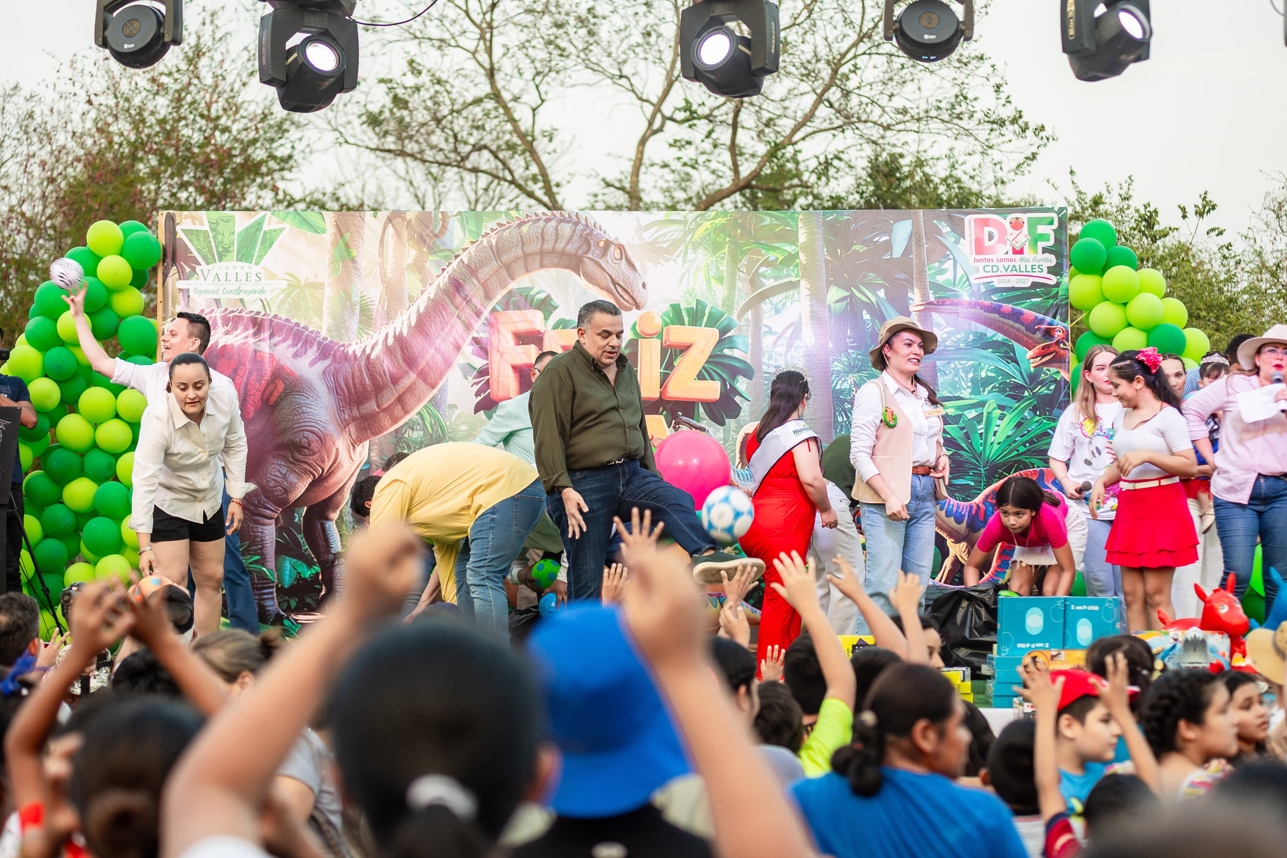 Ciudad Valles vivió una tarde mágica este miércoles 30 de abril con motivo del Día del Niño, cuando más de tres mil menores, acompañados de sus familias, se dieron cita en el Parque Tantocob para disfrutar de un colorido y alegre festejo que tuvo como temática principal a los dinosaurios.