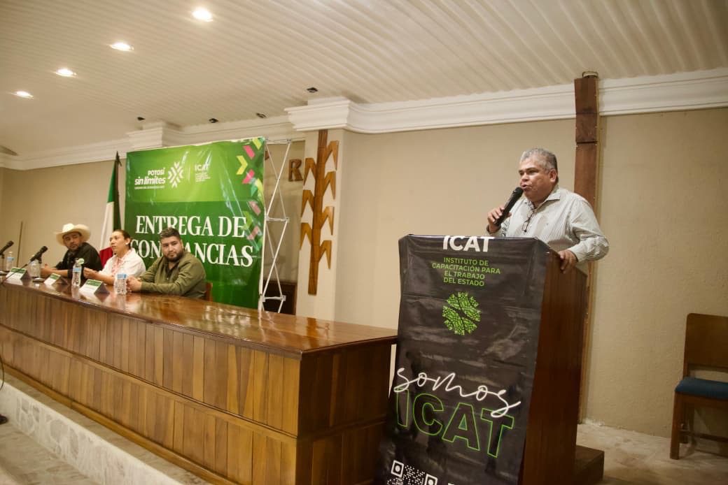 A la entrega de alrededor de 800 constancias de finalización de capacitaciones por el ICAT, estuvieron presentes el Ing. Alonso Coronado Castro, Delegado de la SEDARH Zona Huasteca; el Ing. Héctor Martínez Rodríguez, Director de Vinculación del ICAT San Luis Potosí; Lic. Miguel Ángel Sánchez Hernández, Director de Protección Civil Municipal, y demás invitados especiales.