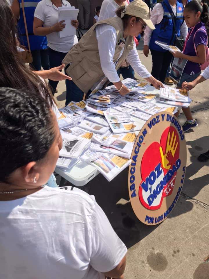Hoy el colectivo Voz y Dignidad por los Nuestros realizó actividades en un homenaje a la vida, en la glorieta Hidalgo, que donde recordaron a sus familiares y entregaron volantes con las fotografías de cada uno de los desaparecidos.