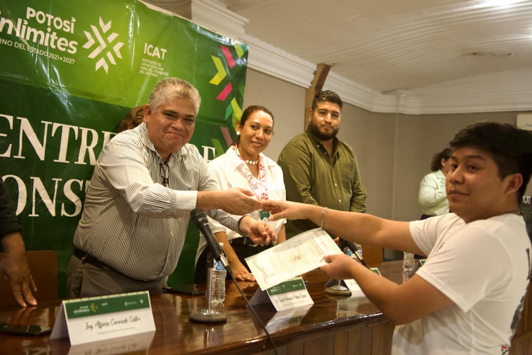 En la ceremonia también estuvieron presentes el Ing. Alonso Coronado Castro, Delegado de la SEDARH en la Huasteca; el Ing. Héctor Martínez Rodríguez, Director de Vinculación del ICAT San Luis Potosí; y el Director de Protección Civil Municipal, Lic. Miguel Ángel Sánchez Hernández.