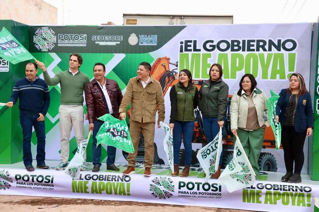 Las y los habitantes de Villa de Pozos, accederán a la modernidad con la pavimentación de más calles que mejorarán la imagen de sus colonias, brindarán mayor seguridad y dinamizarán la movilidad luego de décadas de abandono por parte de la herencia maldita.