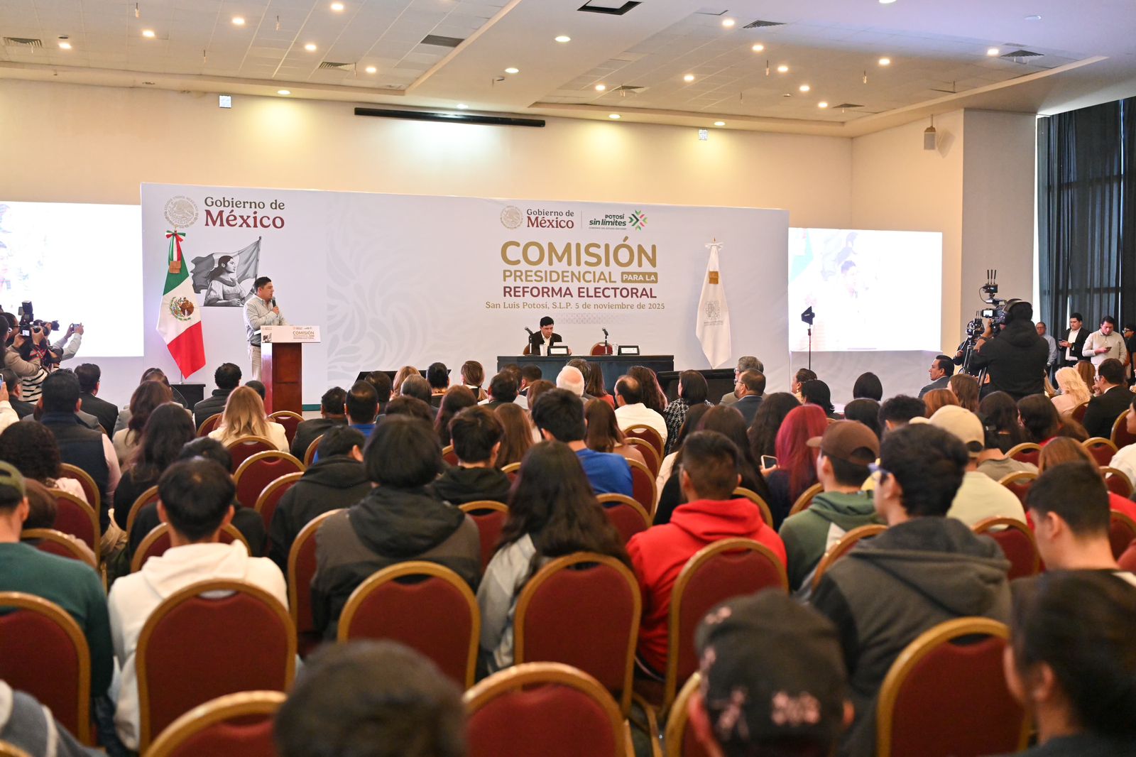 San Luis Potosí.- El gobernador del Estado, Ricardo Gallardo Cardona, participó en el inicio de la audiencia pública de la Comisión Presidencial para la Reforma Electoral, un espacio de análisis y discusión que reunió a legisladores, magistrados, representantes del Consejo Estatal Electoral y de Participación Ciudadana (Ceepac), académicos, jóvenes universitarios y diversos sectores sociales.