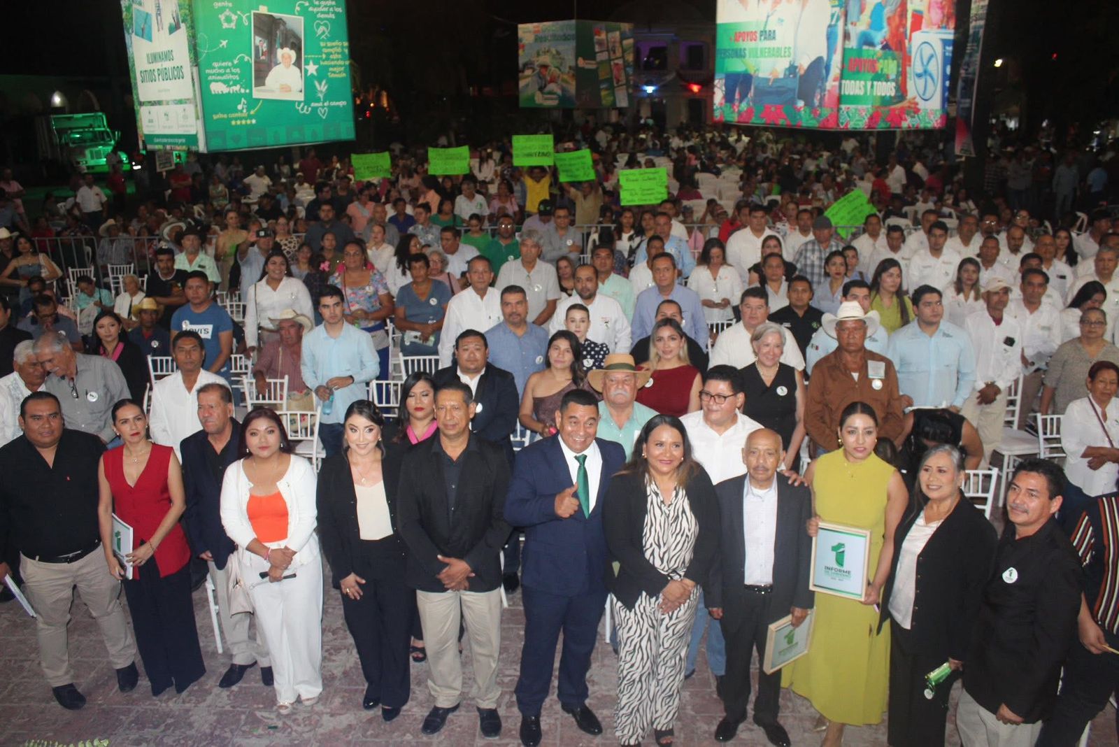 TAMUÍN. Con un balance de obras y acciones que reflejan avances tangibles en beneficio de la población, el presidente municipal Marcelino Bautista Rincón presentó su Primer Informe de Gobierno en la Plaza de la Amistad, donde se congregaron más de mil 500 personas.