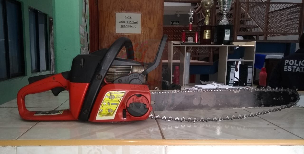 Un joven llegó a la casa de su abuelita de 81 años de edad y la amenazó con un machete, luego se apoderó de una motosierra; fue capturado por los elementos de la Secretaría de Seguridad Pública del Estado.